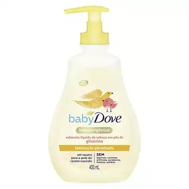 Nosso Sabonete Líquido da Cabeça aos Pés de Glicerina Baby Dove é hipoalergênico e ajuda a manter a pele saudável desde o primeiro banho do recém-nascido. Comprovadamente minimiza os riscos de alergia com um perfume desenvolvido para a delicada pele do bebê. A hora do banho com seu bebê é especial e, por isso, sabemos que você quer o melhor sabonete líquido para esse momento. Como a pele do bebê é mais fina do que a de um adulto, ela precisa de um cuidado mais delicado. Com glicerina e nutrientes naturalmente encontrados na pele do bebê, ele vai além da limpeza suave, esse produto ajuda a repor os nutrientes essenciais e a hidratação que a pele pode perder durante o banho. Antes de dar o banho no seu bebê que tal limpar primeiro as Toalhas Umedecidas Baby Dove? Elas ajudam a remover as impurezas com suavidade, deixando a pele do bebê ainda mais saudável. Experimente também hidratar o corpo do seu pequeno pelo menos duas vezes ao dia com uma fórmula suave e hipoalergênica como a das Loções Baby Dove. Testado por oftalmologista, dermatologista e pediatra. Modo de uso: Aplique uma pequena quantidade nas mãos, ensaboe delicadamente a pele e o cabelo do seu bebê. Enxágue em seguida.